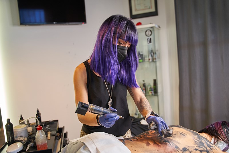 Sono un’artista e ciò’ implica una personale e continua evoluzione, necessaria perché la mia creatività e passione possano esprimersi e trasformarsi in opere d’arte. La pelle mi dà la possibilità di mettere alla prova le mie capacità, ogni giorno testo nuove pelli e nuove reazioni. Affino le mie capacità sulla pelle della persona che ho di fronte. La macchinetta diventa lo strumento con cui riesco a trasferire le emozioni dei miei clienti e a fissarle in un preciso istante, rendendole il ritratto indelebile di un’emozione.